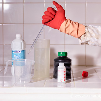 Les trois comparses se réunirent dans la cave de l'établissement, dans la partie laboratoire experimental fermé au public. La faïence se prêtait à recevoir les produits les plus corrosifs du pack de chimie pure. Nono le doyen du labo était venu superviser cette scéance experimentale afin d'éviter tout risques d'accidents. "La photo c'est bien rigolo, mais prudence...l'optique et la chimie ce n'est pas de l'informatique, il y a des risques pour la santé...quoique les viseurs numériques c'est très mauvais pour le blanc de l'oeil." dit il en ricanant
